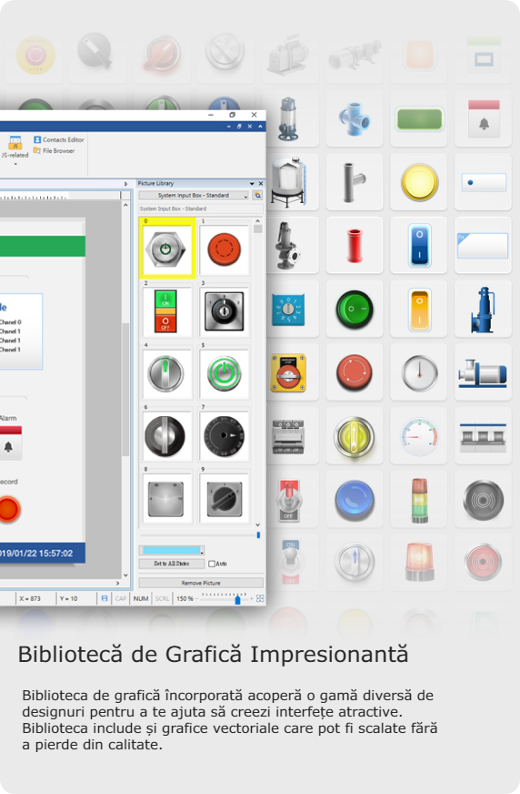 EasyBuilder Pro – o platformă software versatilă dezvoltată de Weintek – este creată exclusiv pentru HMI-urile Weintek. Indiferent dacă ești un expert în automatizări sau nu, poți conta pe EasyBuilder Pro pentru a-ți finaliza rapid și ușor proiectul unic de HMI.
